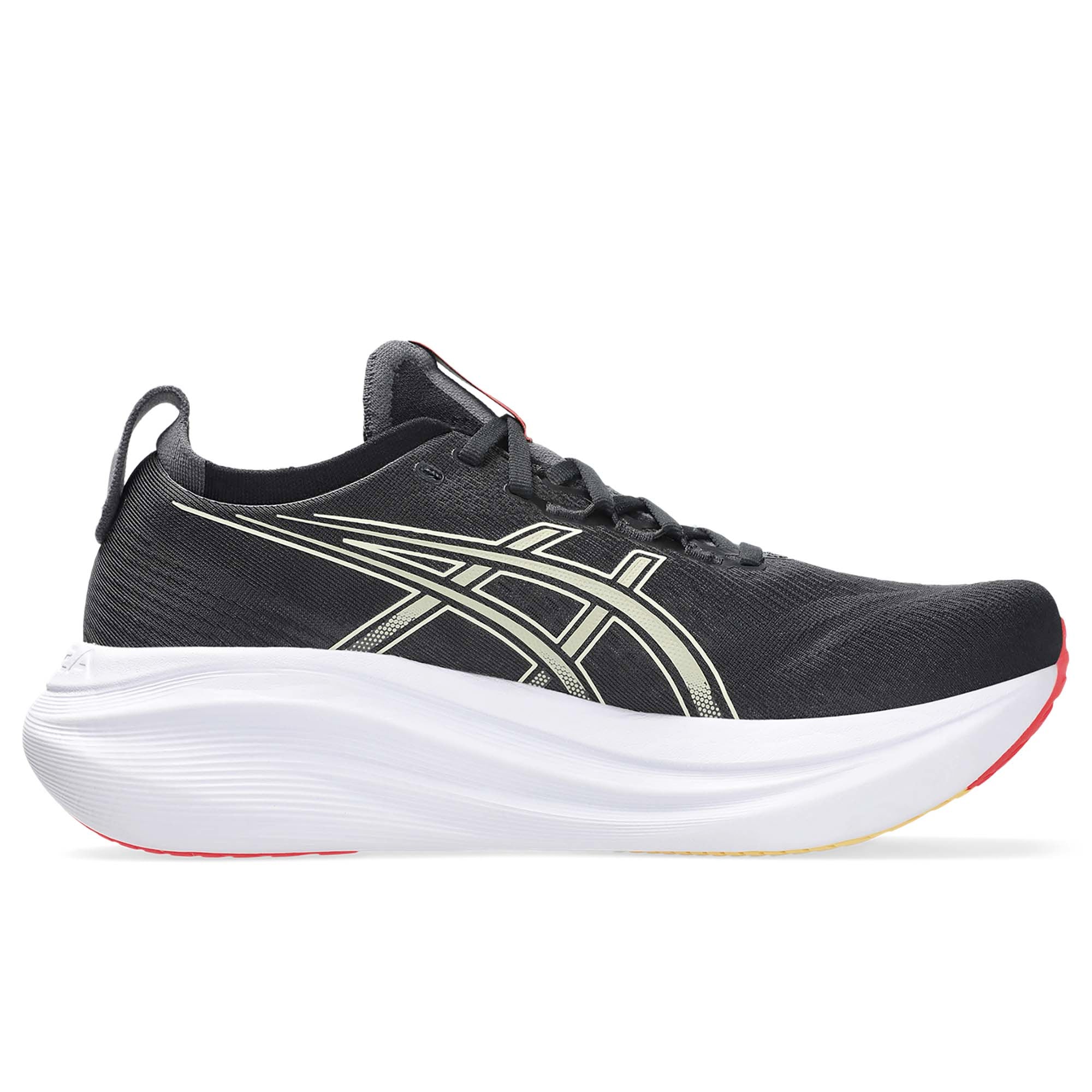 Details : Ideal for long distances, the GEL-NIMBUS 27 provides a smooth and stable running experience. The combination of PureGEL technology in the heel, FF BLAST PLUS ECO foam, and an ASICSGRIP outsole ensures maximum comfort and shock absorption. The gusseted tongue system improves the fit, preventing unwanted movement. Weight: 305 g